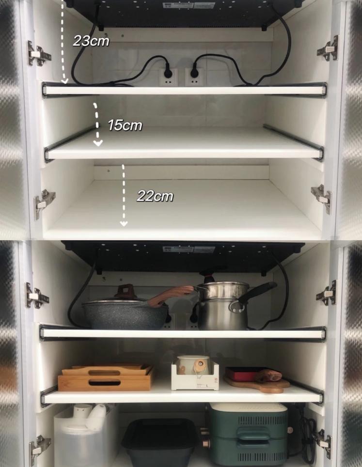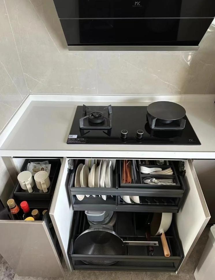 而且,之所以有很多人最後又換回了“層板”,還有一個非常重要的原因,即“鍋具收納”更加合理。拉籃本身就佔據櫥櫃內部很大空間,會大大減少鍋具的收納機會。而層板櫃則沒有這方面的問題。