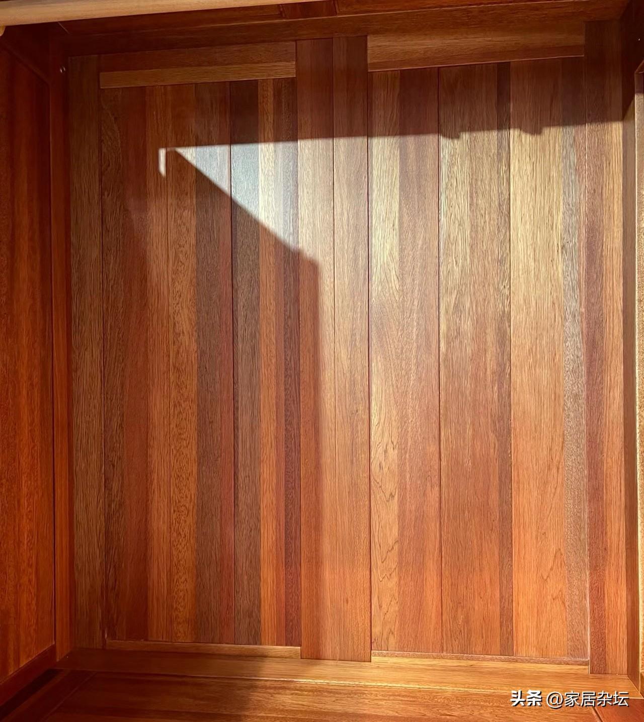 ①、原材是一整塊板材。中間沒有任何的分層,也沒有任何的添加劑,就是使用木材切割而成的實木板材。