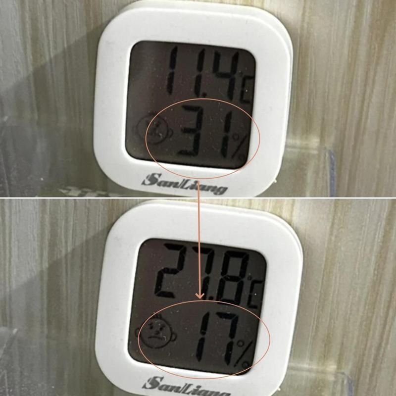 從上面網友貼出來的對比圖不難看出,3個小時的時間,室內溼度從31%降到了17%。溼度過低會直接影響家居生活的體驗,包括皮膚乾燥等等。而且過於乾燥的室內也會令人心情焦躁。