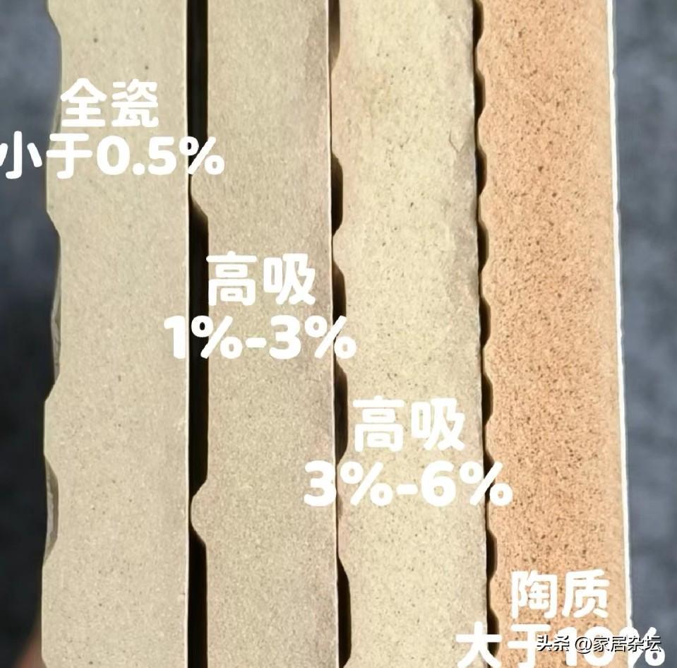 而決定瓷磚類型的一個很重要的因素,就是瓷磚的吸水率。