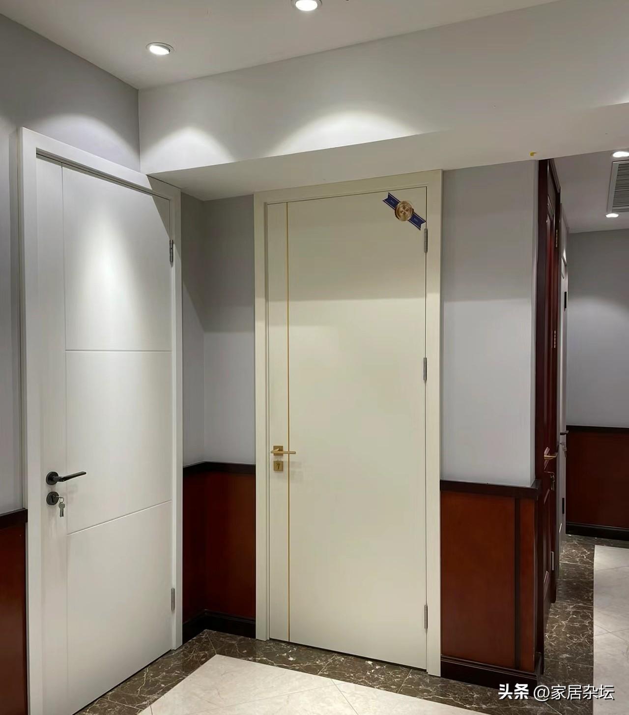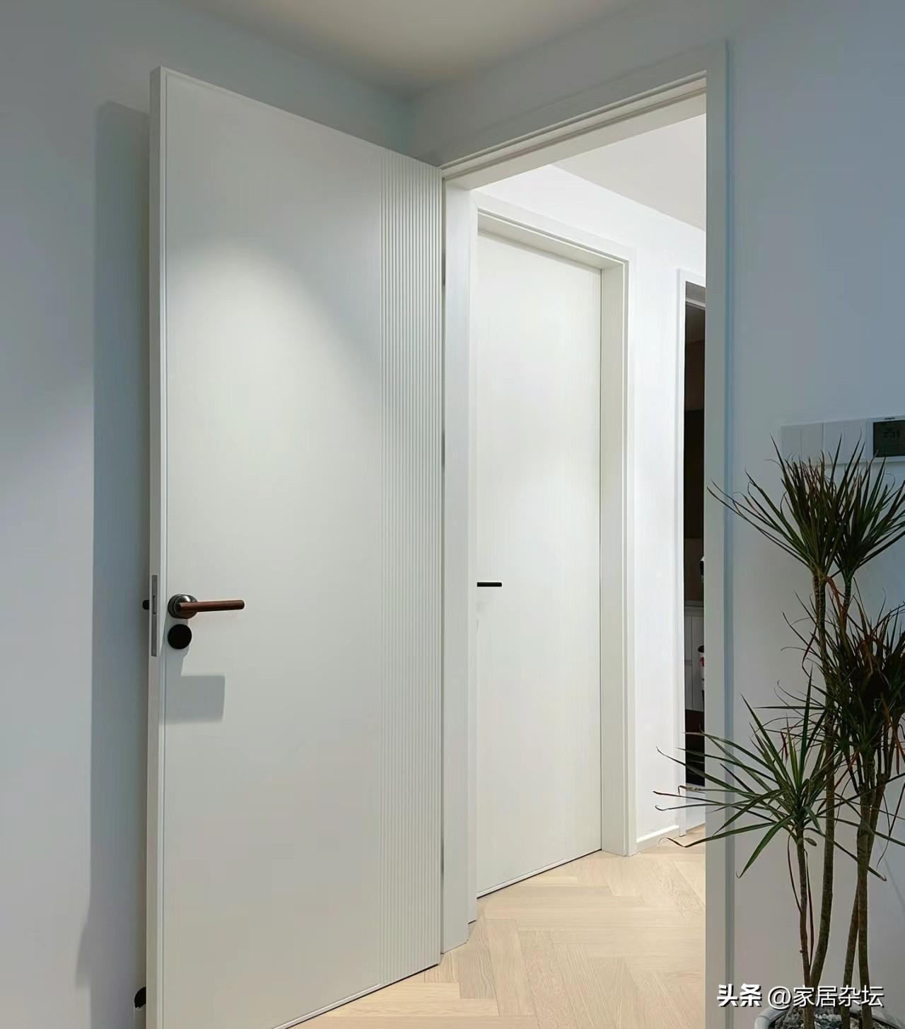 ①、假通頂。如果我們喜歡通頂的效果,那麼建議大家可以去了解一下假通頂門。其實就是在常規門的基礎上,在門上口用板材做了一個假的造型裝飾。