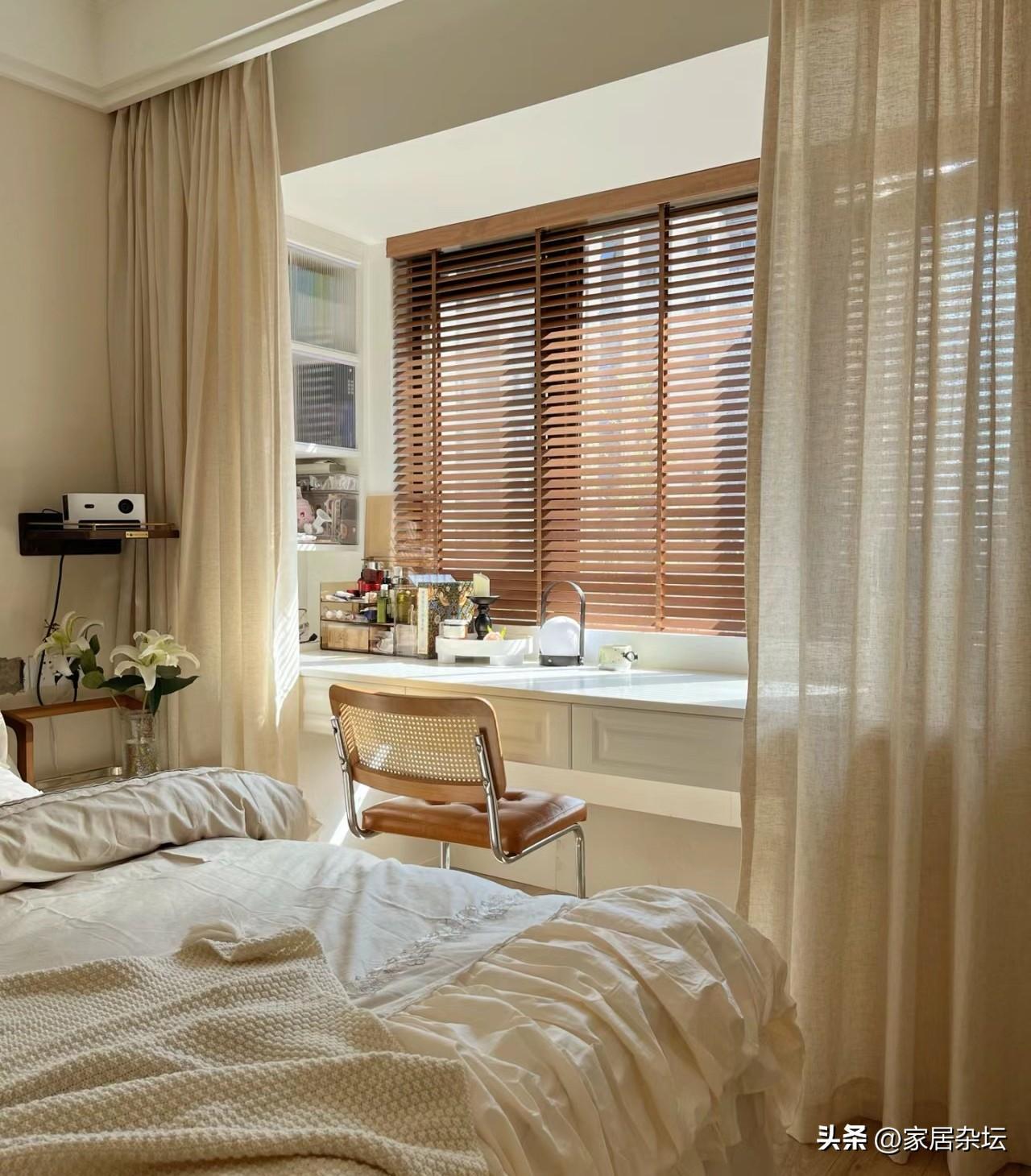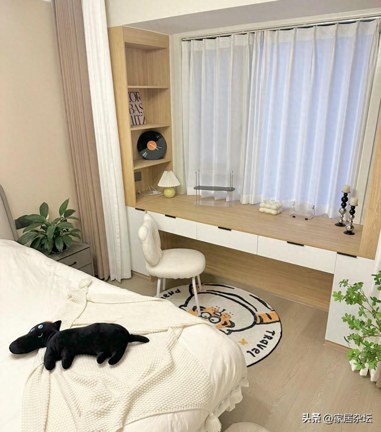 ②、化妝臺。窗臺可以直接設成化妝臺,這樣就節省了臥室化妝臺的空間,也是很實用的。