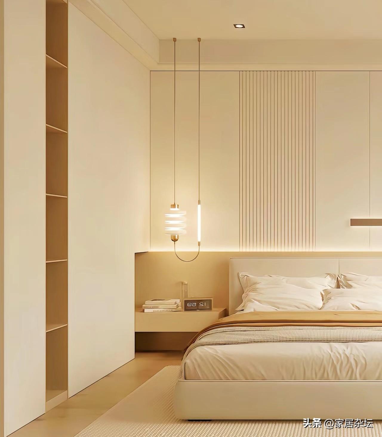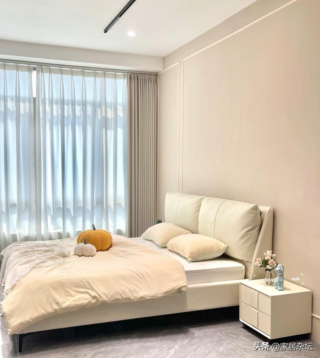 ②、牀頭做背景牆,其實在一定程度上會有壓抑感。特別是突出於牆面的一些裝飾,在夜晚睡覺的時候,就感覺壓在上面,很不舒服。