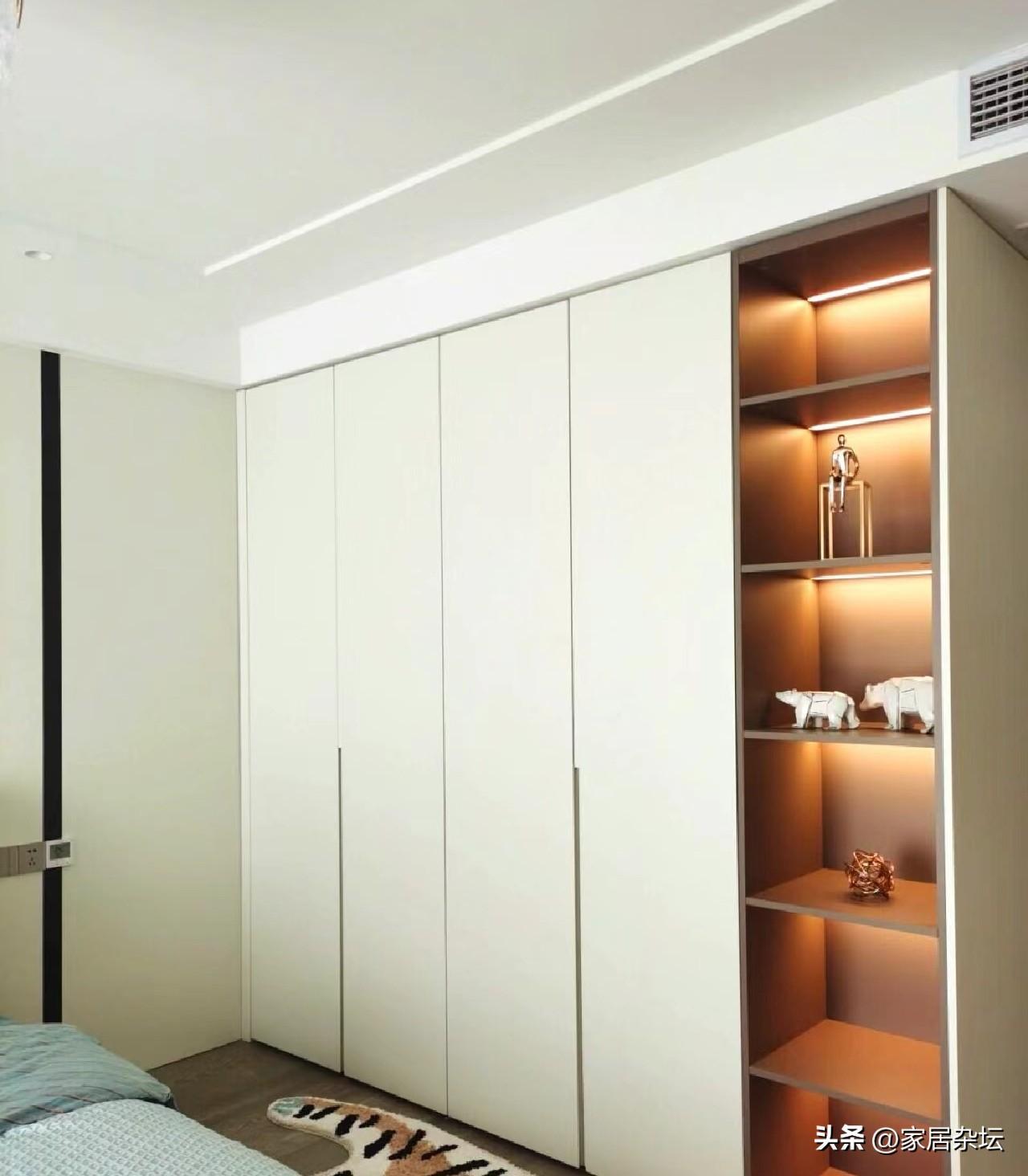 ②、玻璃櫃門。對於這類櫃門,要慎重。如果我們能夠把衣服疊放的非常整齊,可以選擇;如果很懶,那麼就不要選擇玻璃櫃門。