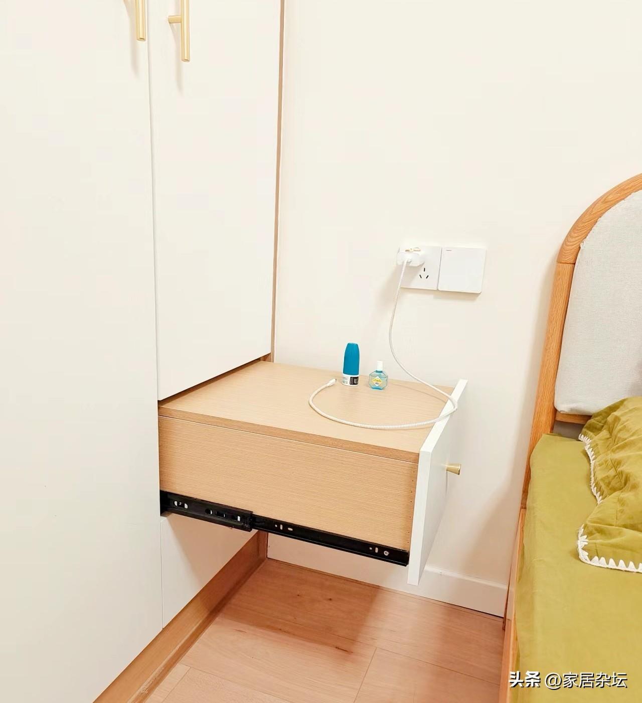 ①、非常佔地方。大部分牀頭櫃,寬度得達到50公分。如果一邊一個,就佔了一米。其實這是牀兩側的空間,很大程度都被浪費了。