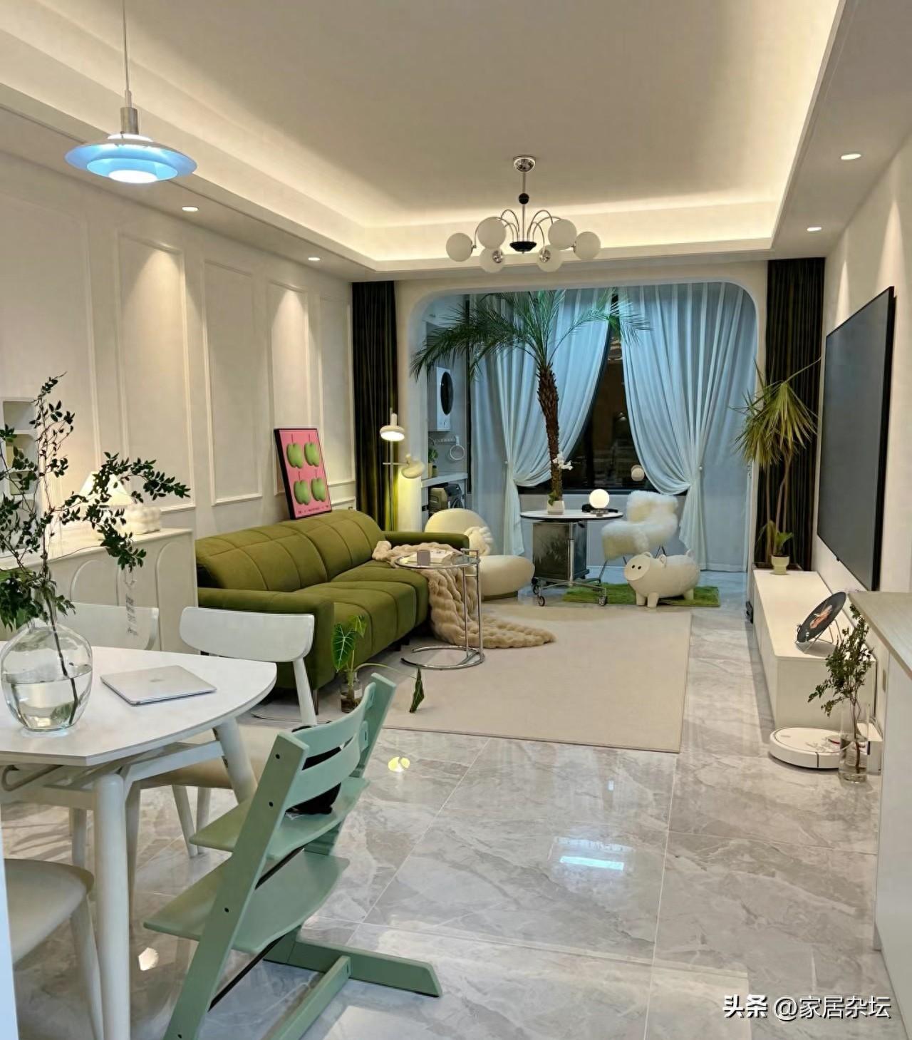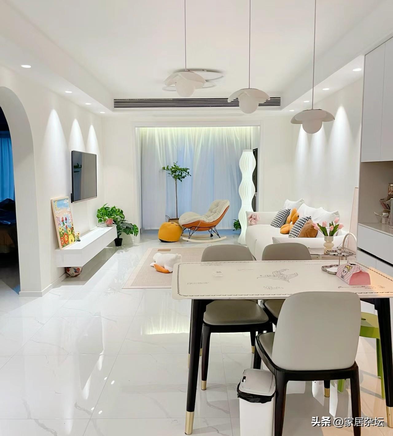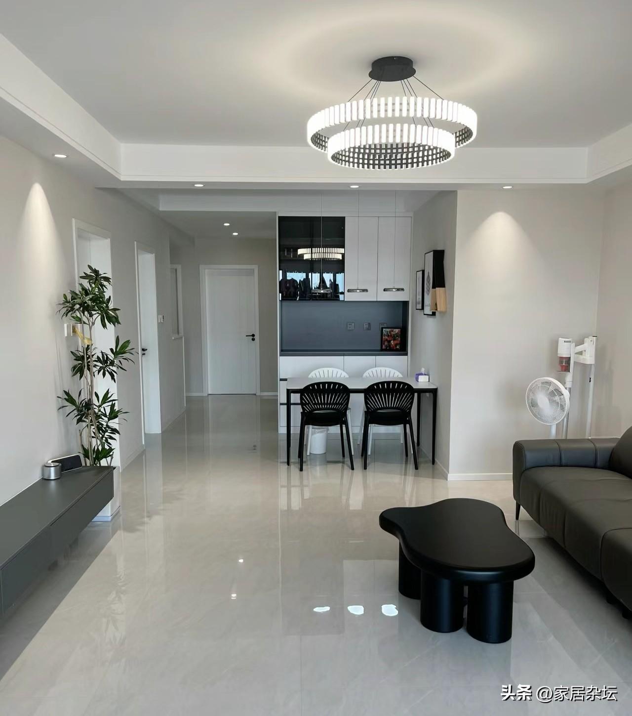 ①、讓整個客廳餐廳會顯得更亮堂。比如我們可以選擇淺色的瓷磚,加上表面的光澤度的搭配,會讓光線更好。