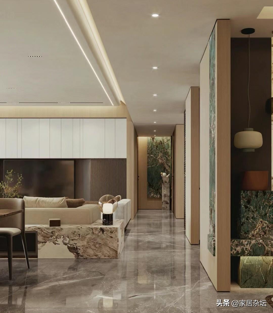 ③、意式輕奢風格,建議大家選擇大花紋的石材磚。