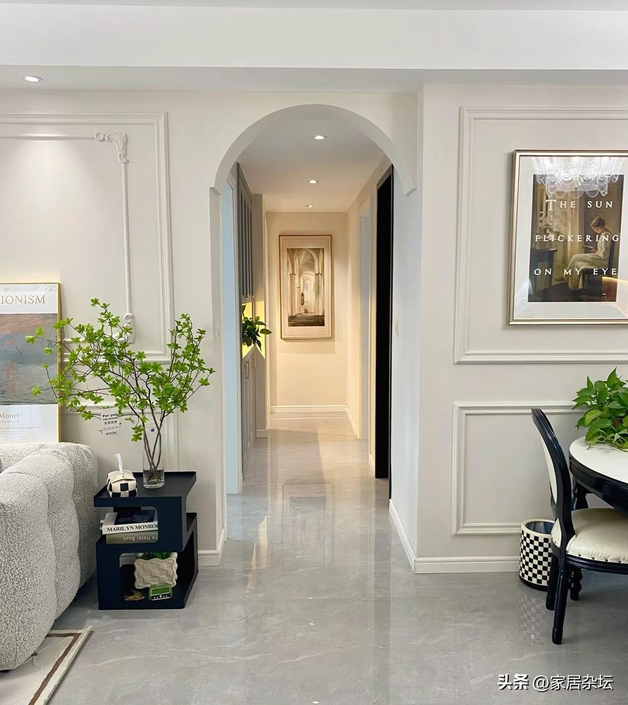 ①、站在門口放眼望去,整體性特別好。如果能夠將室內的整個地面鋪貼爲一體,在大氣方面來說,是非常好的一種表現。