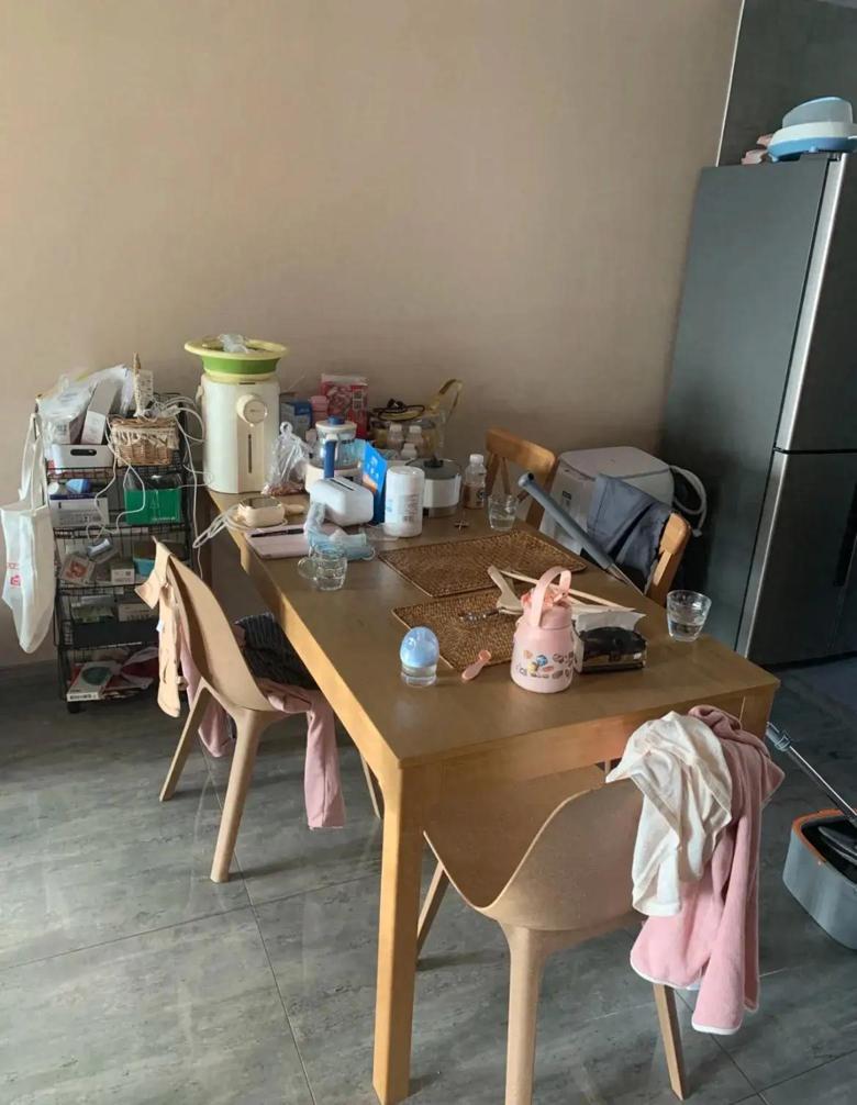 面積大還容易堆放東西,整理時,把不用的扔掉,用的東西歸類進櫃子,必須要用的周邊,可以隱藏,比如餐巾紙可以藏在桌下。