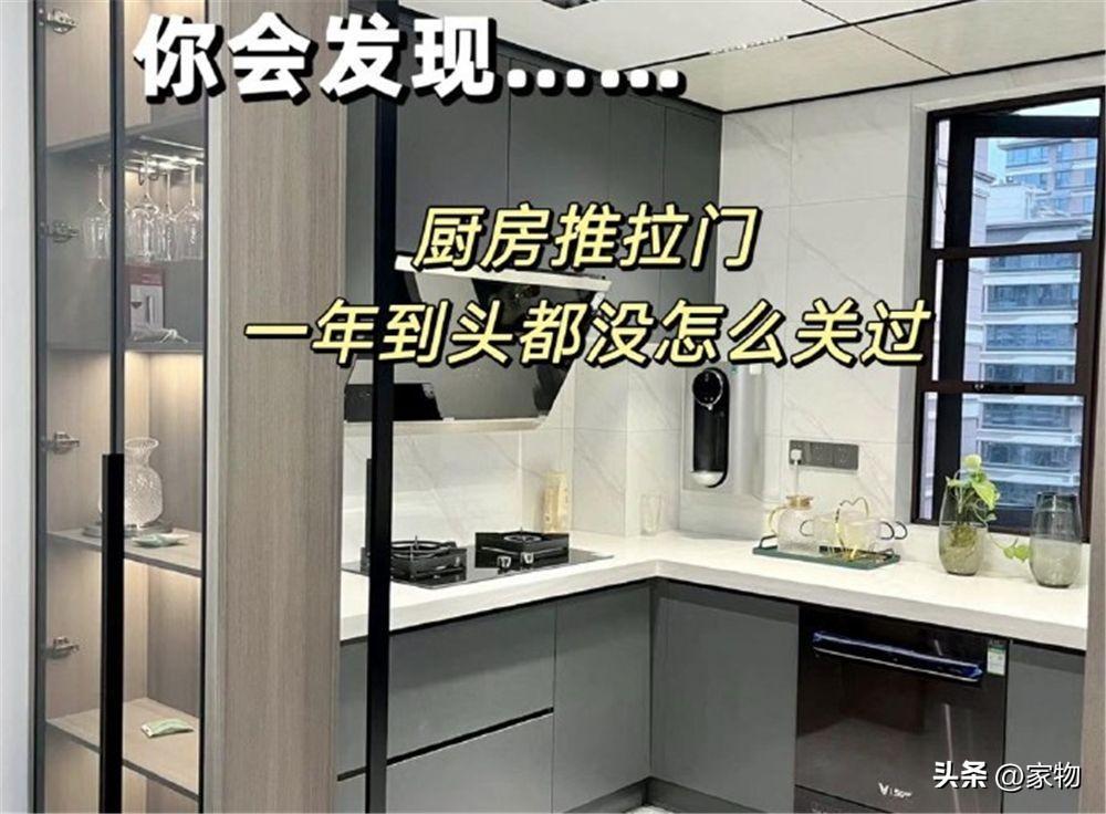 廚房做成大推拉門的話,也會佔用較多的空間,實際上也沒多大用,很少開關,如果是那種U形廚房,不妨試試半開放式格局,可以不裝門,個人感覺各有利弊。