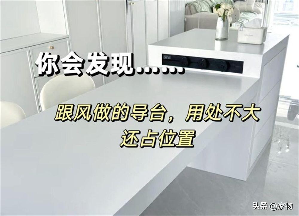 在家裏的廚房,我不建議強行去學習島臺式裝修,尤其是這種中島式的設計,在普通戶型裏,它會佔據較大的空間,讓做飯烹飪難以施展得開,還不如普通的廚房櫥櫃佈置。