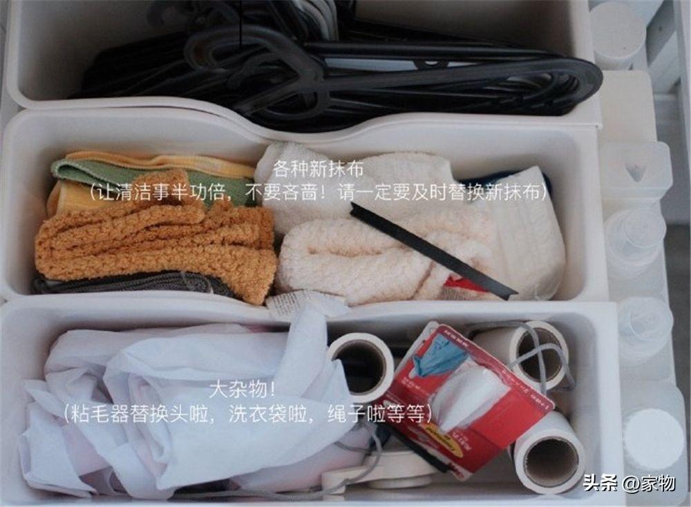 各種抹布和替換和清潔用品之類的東西,個人建議也單找收納盒進行分類收納,用完了以後不會把抽屜裏弄髒。