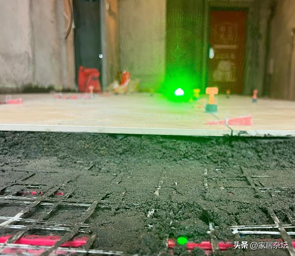 而在地暖完成面的上面,常規又要鋪水泥砂漿,然後來鋪瓷磚。