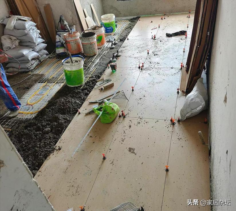 對於家裏自己安裝的地暖,個人建議大家可以採用幹鋪法直接完成上面瓷磚的鋪貼。既能控制層高,還能保證鋪貼質量。