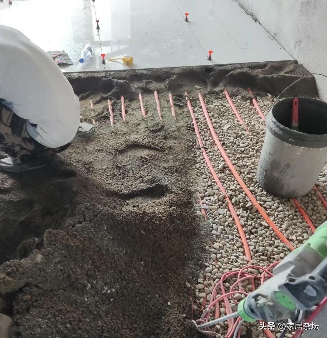 ②、對地暖管也更有保證。因爲先用混凝土把地暖管已經保護起來了,所以,我們鋪瓷磚的時候,是不會破壞到地暖管的。