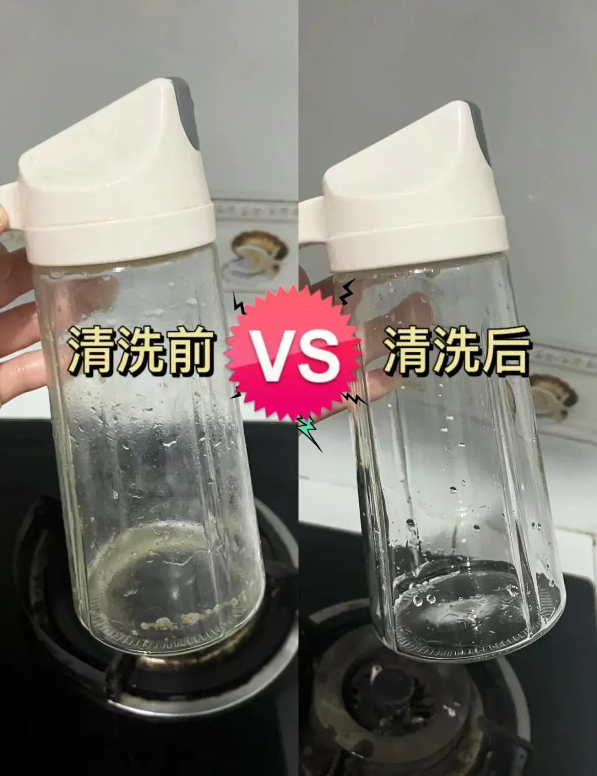 前面洗杯子的問題解決了,後面看婆婆洗油瓶子,又用的老方法,只不過將抹布變成了廚房溼巾。