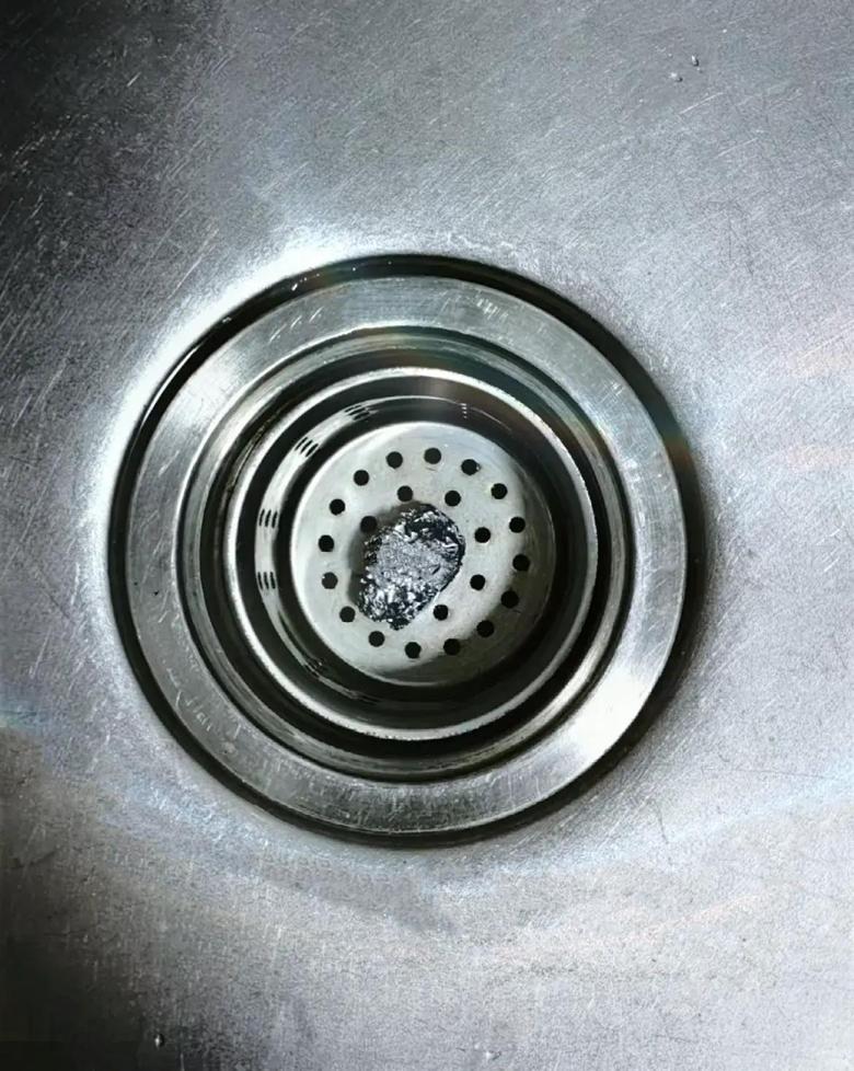 拿平時用烤箱鋁箔紙,撕一點揉成小團,扔進下水籃,然後衝着提籃加熱水,這個過程會釋放金屬離子,防止細菌滋生,產生粘液。