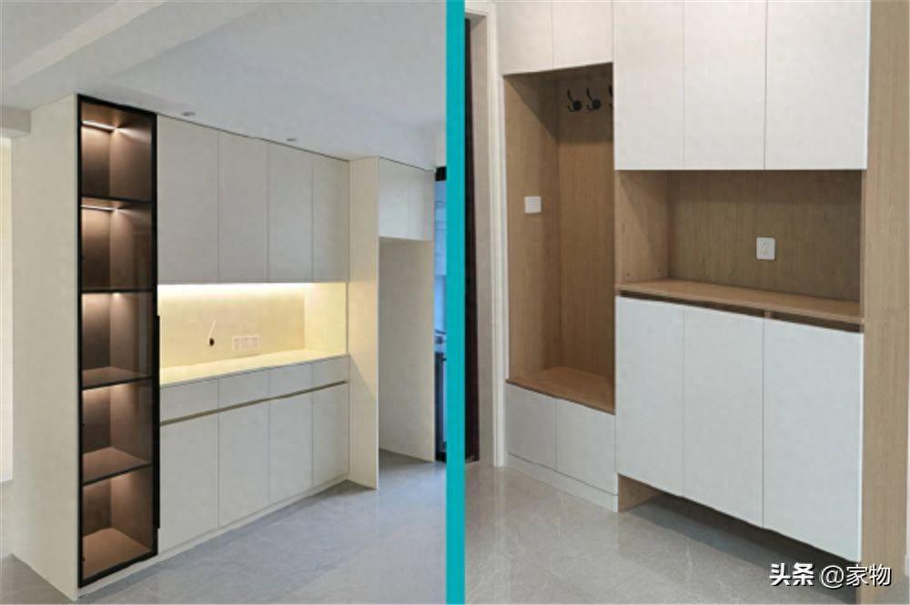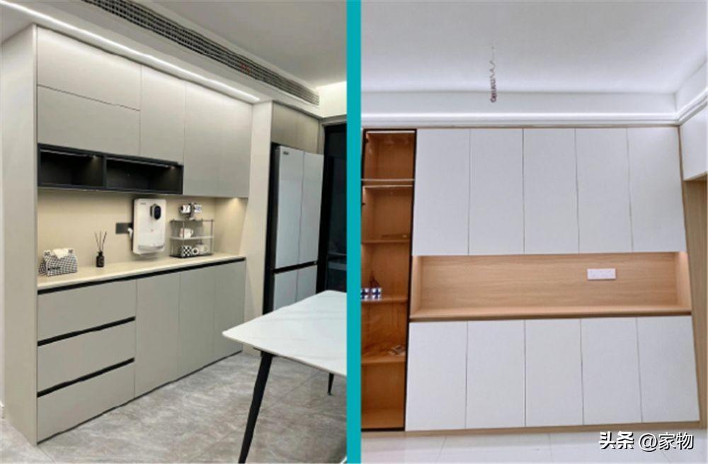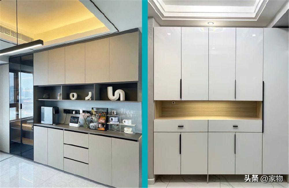 餐邊櫃和屋裏收納的衣櫃不同,如果不做見光板的話,整體性會很差,看起來有些割裂,但做了見光板的話,整個櫃子會顯得一體感更強,更加美觀一些。