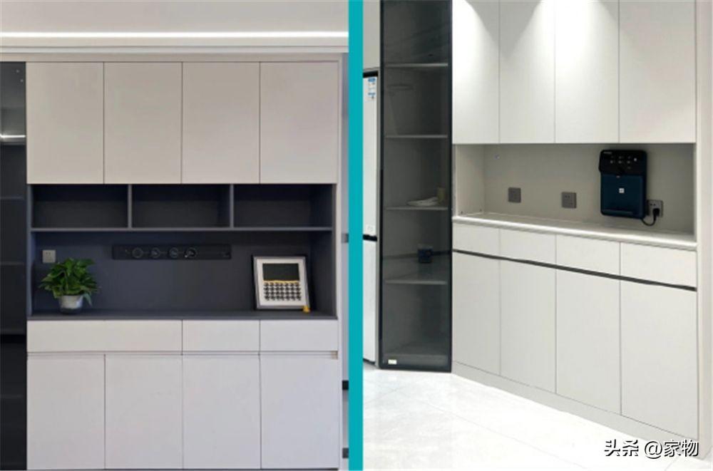 家裏餐邊櫃的插座,也同樣不建議大家忘留、少留,我們可以在開放格留2-3個插座,也可以安裝那種軌道插座,用起來會更加靈活一些。