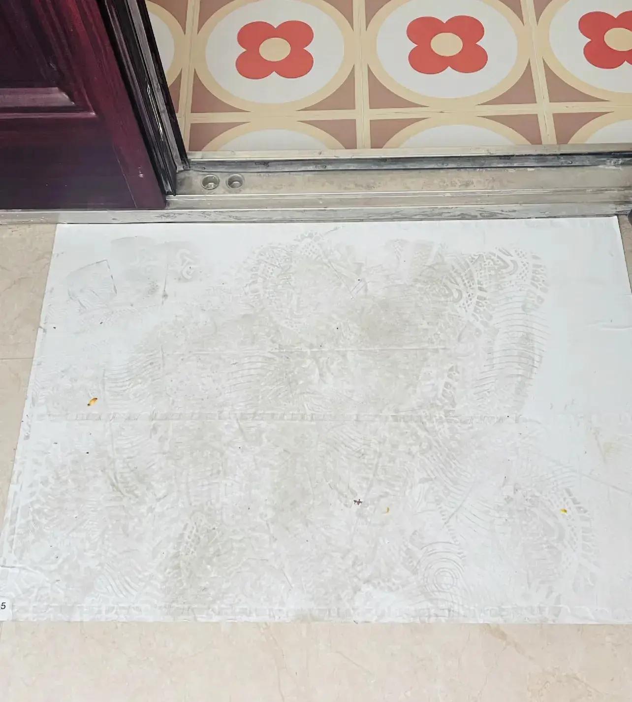 價格不貴,10來塊錢,夠用3、4個月沒問題,而且也有更適合家居場景的白色,然後她就從此給門前鋪這個墊子了,髒了就撕掉一扔,超級方便。