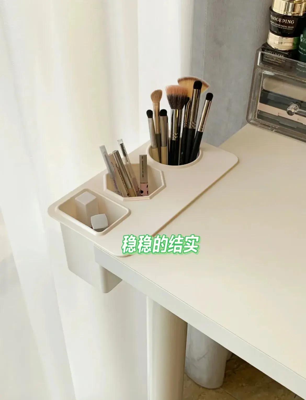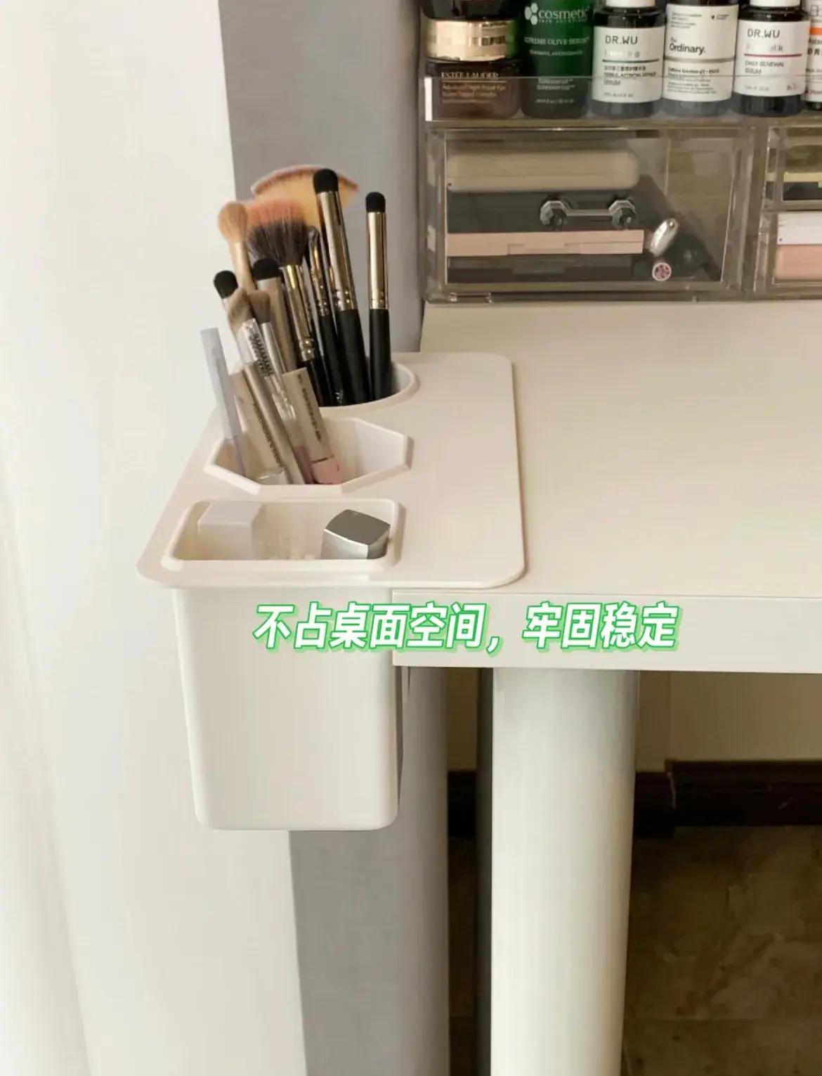 相比普通的桌面收納盒,最大的長處就是可以不佔桌面空間,給桌面擴容,非常適合檯面空間有限的小桌子,用來收納個筆、化妝刷很合適。