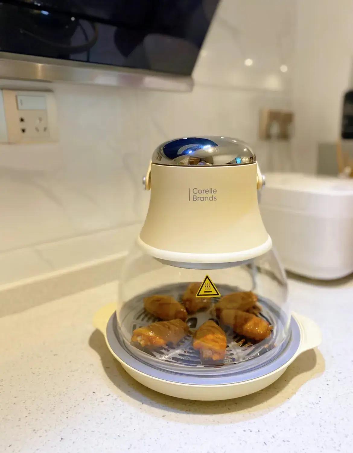 玻璃罩子,可以讓空氣炸的過程可視化,避免燒焦了不知道;