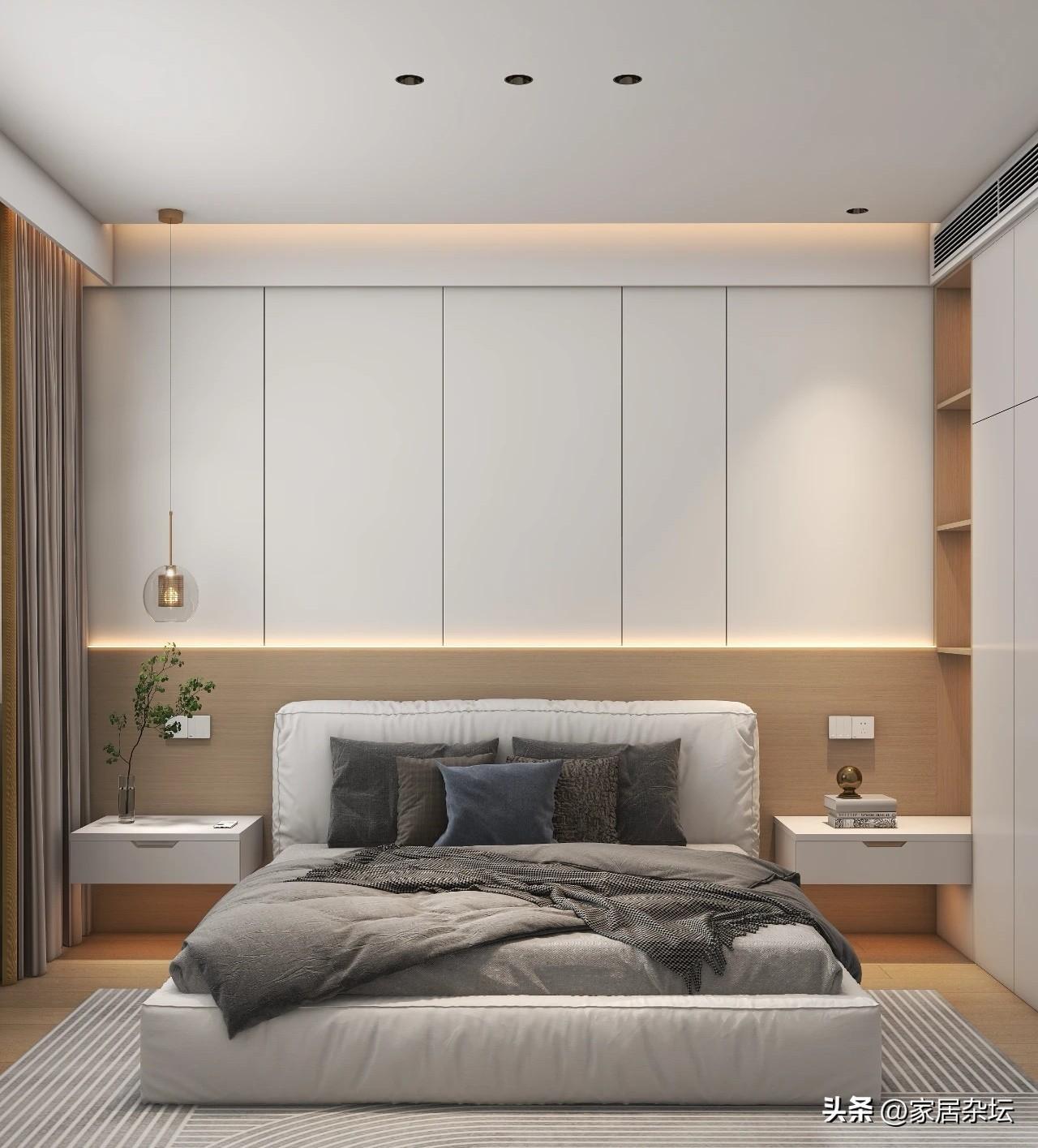 ①、考慮單邊牀頭櫃。如果我們對牀頭櫃的需求不是很大,那麼可以考慮在單側放一個牀頭櫃,也就是一個牀頭櫃。一個牀頭櫃,基本上滿足了一個臥室的使用需求。