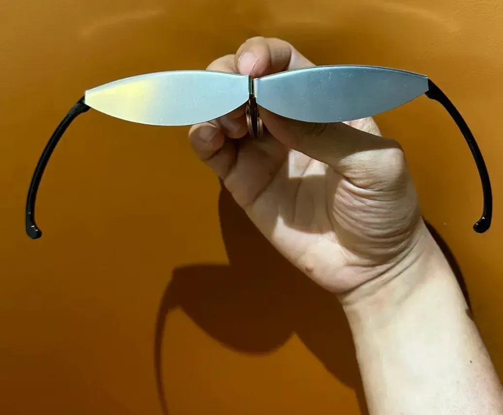 摺疊後的眼鏡,還配有一個小收納袋,可以掛在鑰匙上,出門很方便,而且還不會丟。