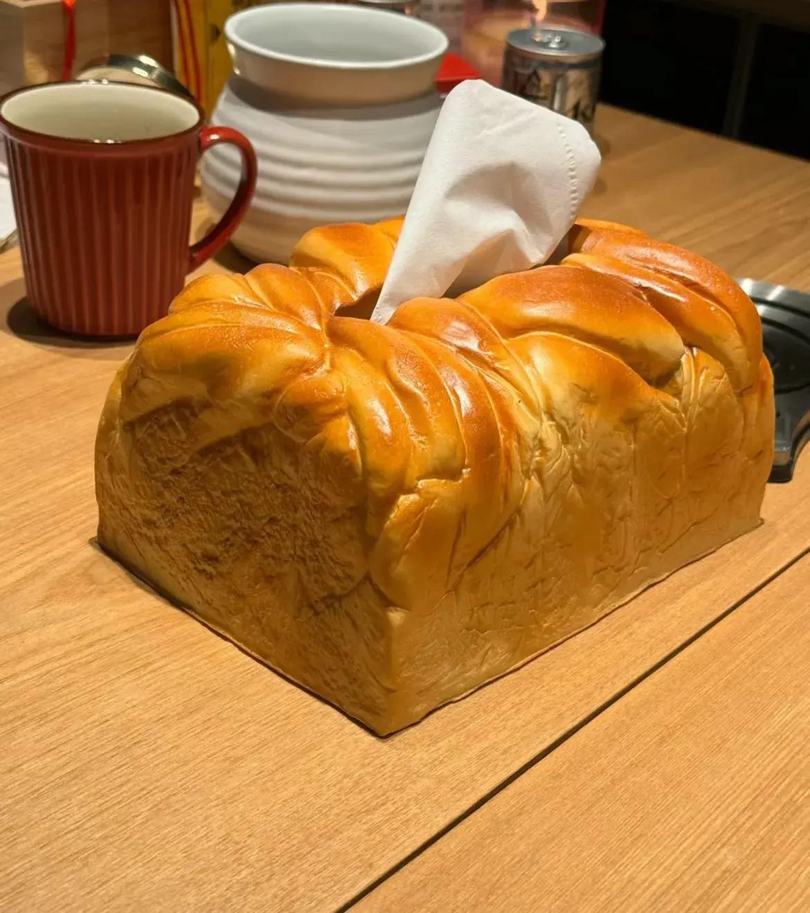 回來你還別說,這大面包,放在餐桌上,不僅不沙雕,還與食物一臉配,這不就是爲了餐桌而專門誕生的紙巾盒嗎?