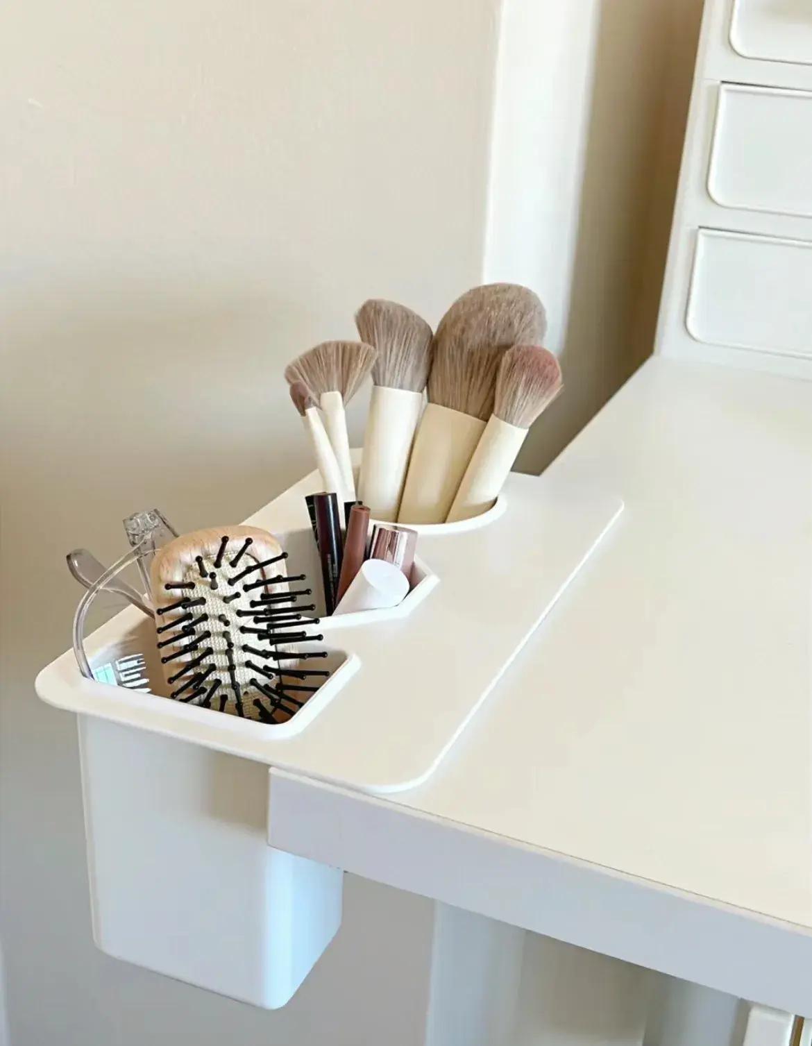 如果桌面空間不夠寬敞,桌邊又剛好有空間,用它來延續桌面空間,收納零散小物品,倒確實是個不錯的思路。