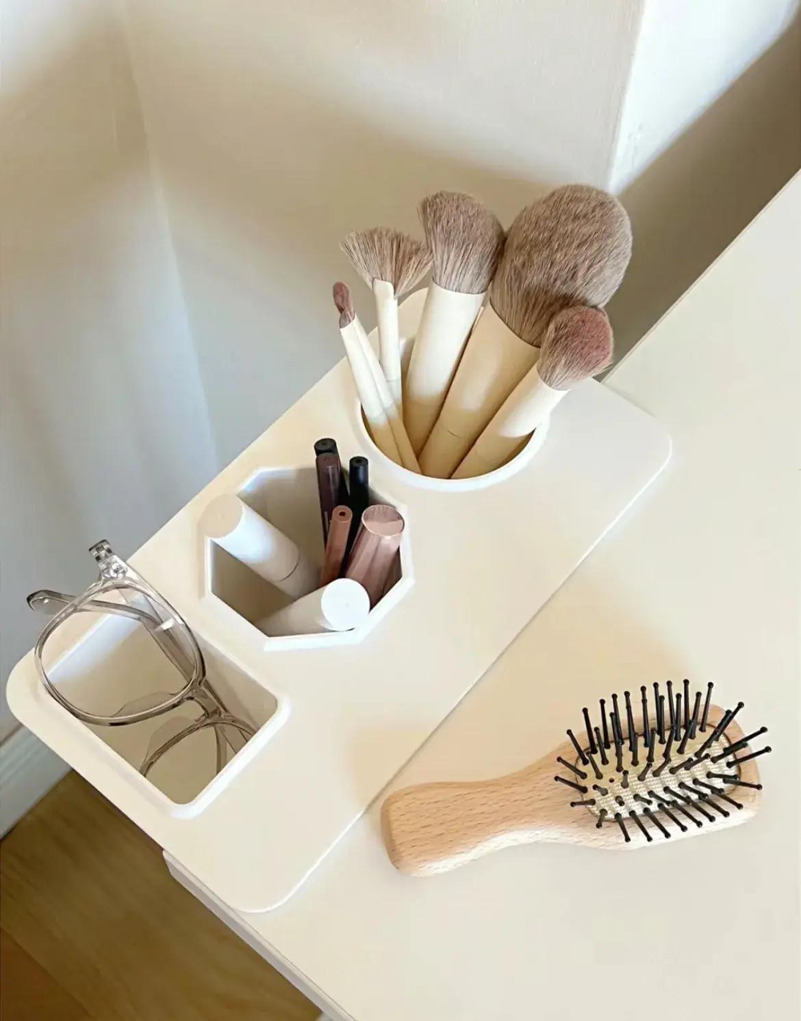 除了放在梳妝桌旁邊,收納化妝品,家裏書桌需要配備筆筒的,也可以用這個思路。