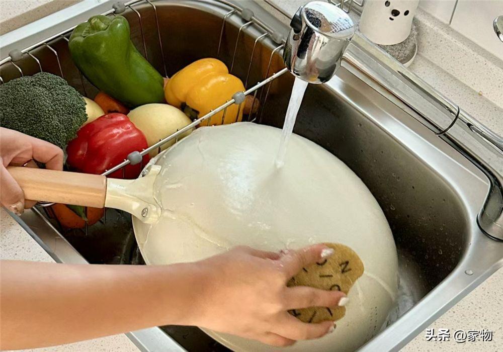 水槽清潔用鋼絲球固然是省力,但久而久之會劃傷內壁,影響其抗污效果,甚至會出現那種太陽紋,影響視覺效果,最好是用一塊專門的百潔布搭配洗潔精慢慢擦拭,兩次即可清潔沖洗乾淨。