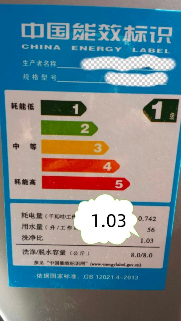 直到我在抖音上看到一個博主做的洗衣機選購科普,這才知道,原來每個洗衣機上都貼着有的那個“中國能效標識”,底部的那行小字“洗淨比”,這纔是我們在選購洗衣機時需要重點關注的,衣服洗得乾不乾淨就看這個數字了。