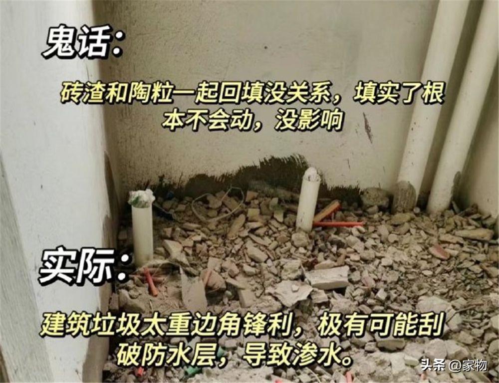 用建渣混合陶粒一起回填,後面沒影響,你聽說過這句話嗎?如果聽說過,那麼遺憾地告訴你,又被裝修公司忽悠了,建渣的邊角太過鋒利,很可能劃破防水層,後面滲水到樓下,想想就麻煩……