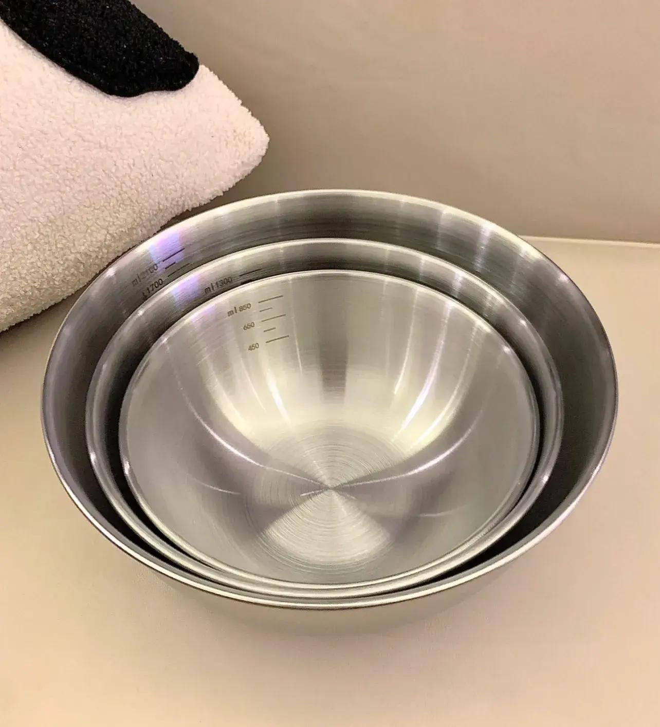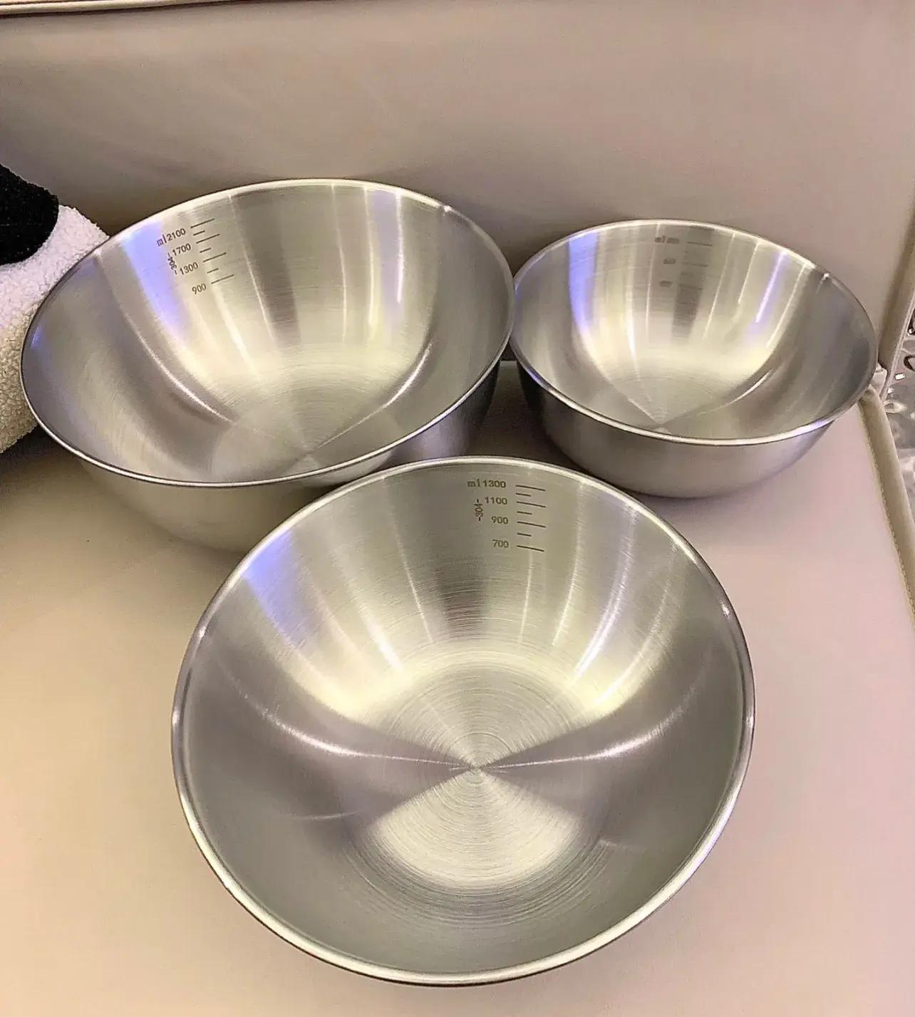 不鏽鋼盆,這個東西大家熟悉,只要是304不鏽鋼的,就具有食品級、耐腐蝕、好清洗、耐造、可以摞起來收納等等優點。