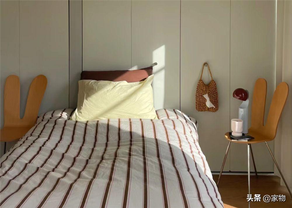 至於牀頭櫃嘛,用凳子代替也剛好合適,既可以當成置物區,又可以在需要的時候當成餐椅,一物兩用,別具一格~