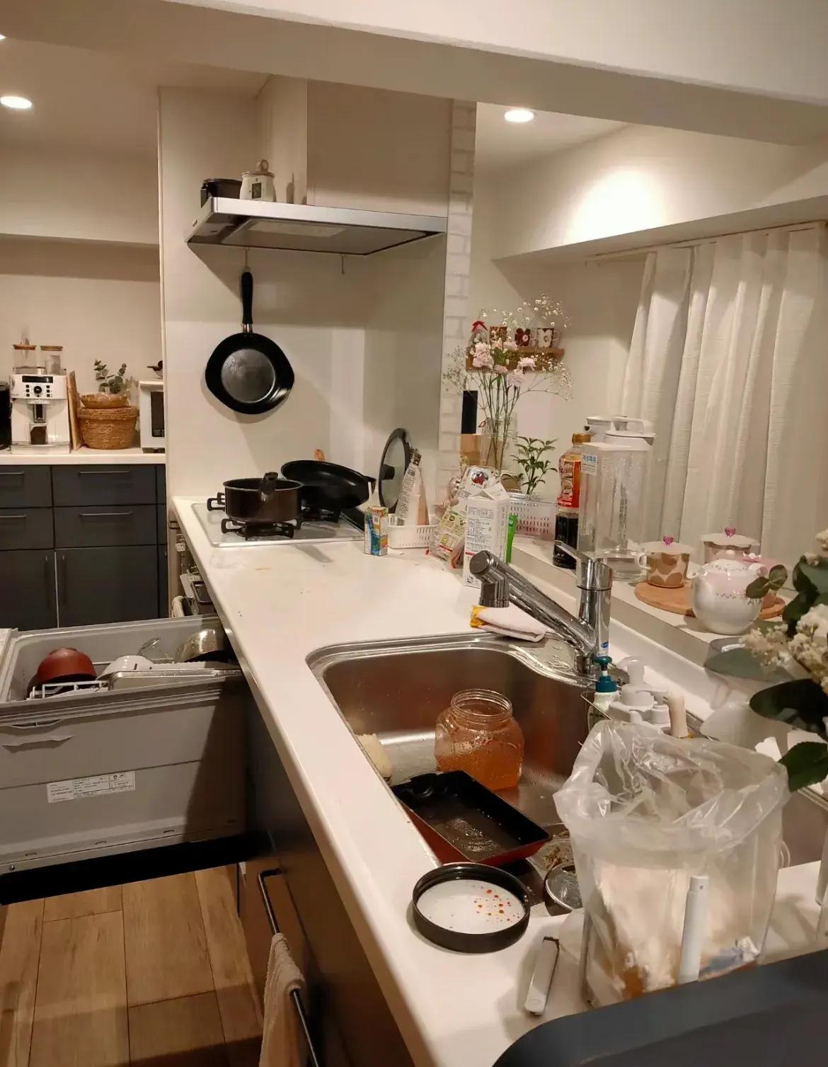 洗完碗的水槽會髒,下水提籃會堆積食物殘渣、飯菜佐料等,所以洗碗不止是洗碗,還要清潔一下週邊。