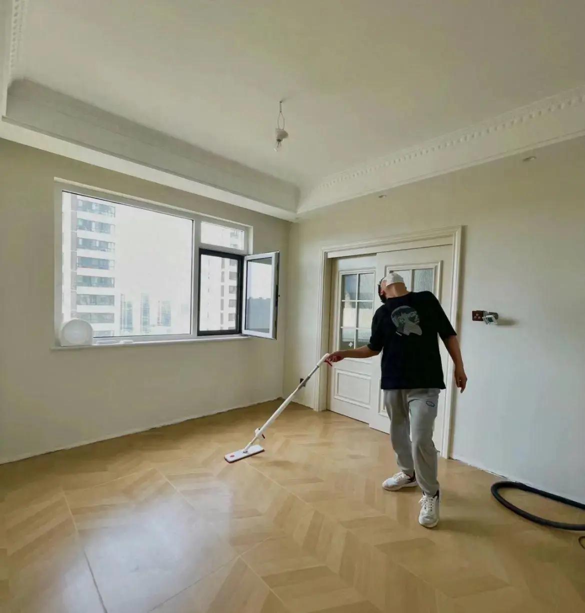 旮旯拐角、桌椅板凳,更是該挪的一個都沒挪,拖完的地明顯髒一塊、淨一塊的。