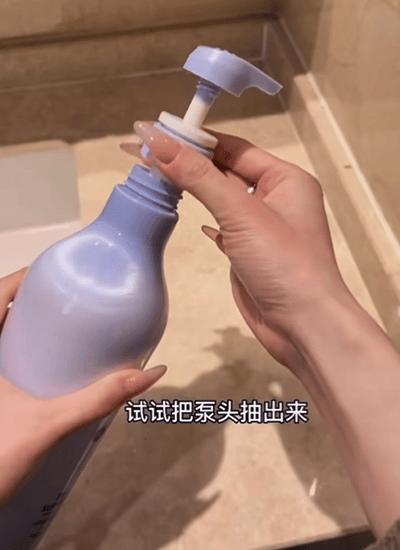 開封過的洗髮水、沐浴露等,按壓嘴的,其實是可以按壓收回的,前提是得擰開蓋子操作。