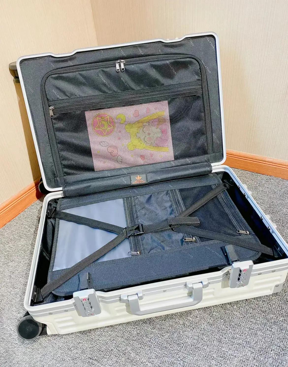 如果行李箱的兩側高度已經利用到極致,夾層的網兜是不會放下太多的東西的,不過它本來薄而廣的設計,也不是來放太多東西的。