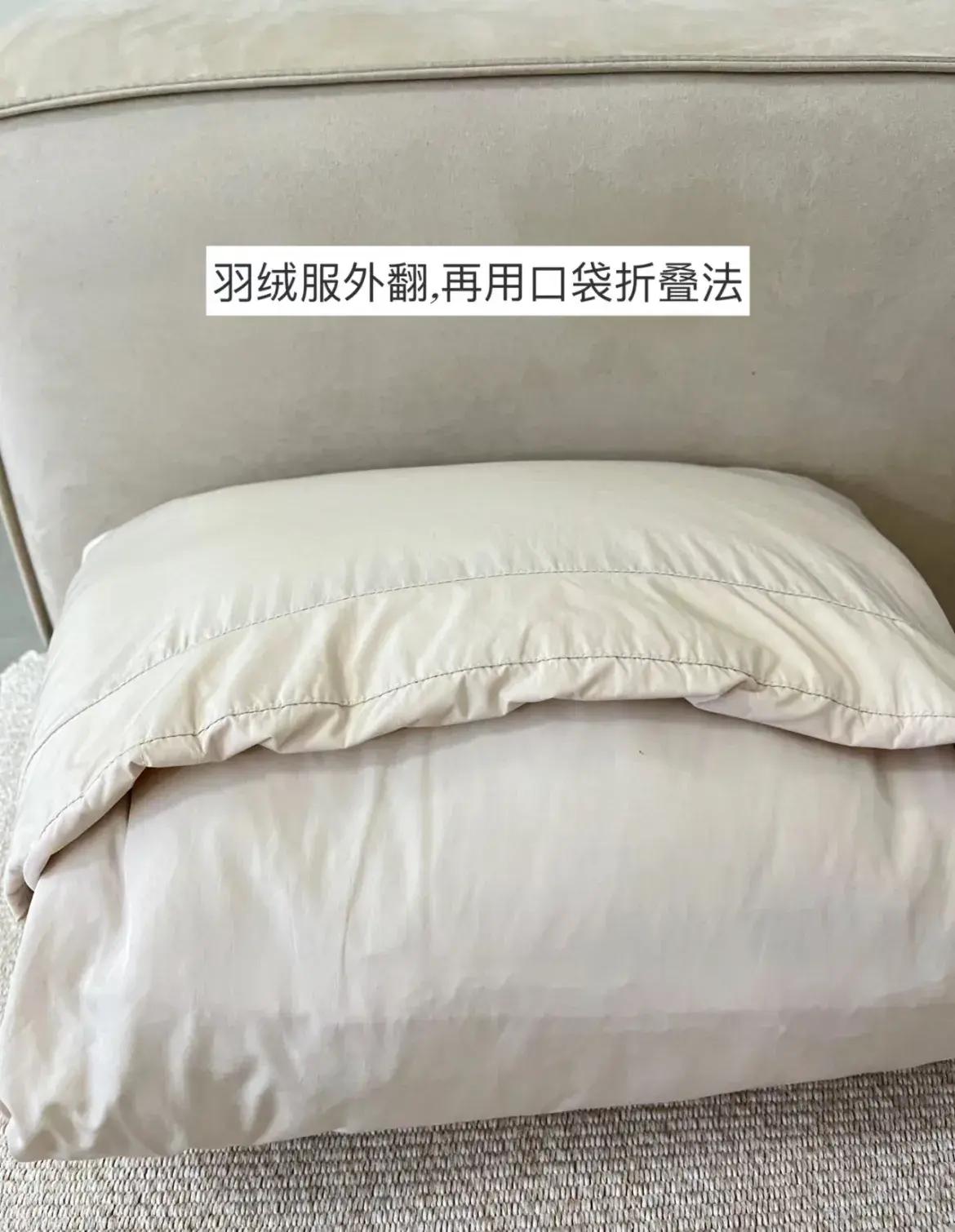 像羽絨服這種大件,如果普通折法,一件就能把行李箱的一半佔滿。