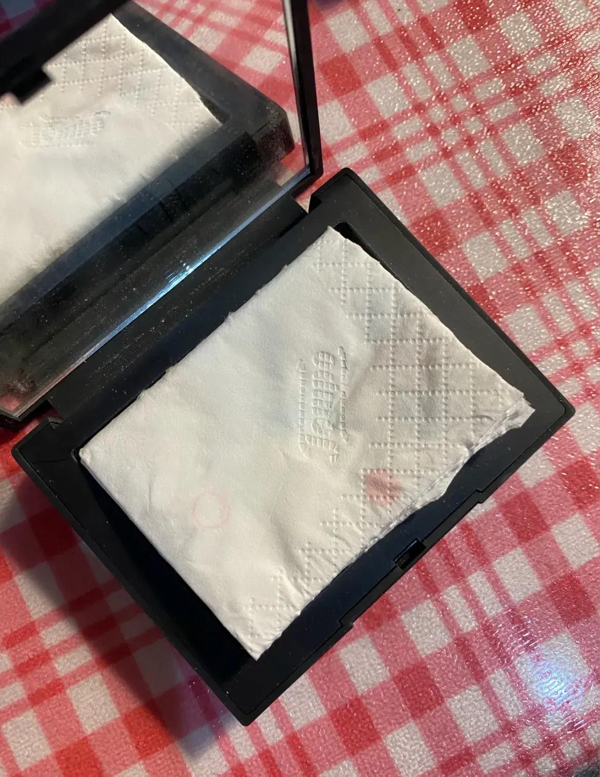 易碎的粉餅、腮紅、眼影等,萬一摔碎了可是筆不小的損失,爲了防止破財,可以在中間墊一層紙巾,避免托盤、晃盪。