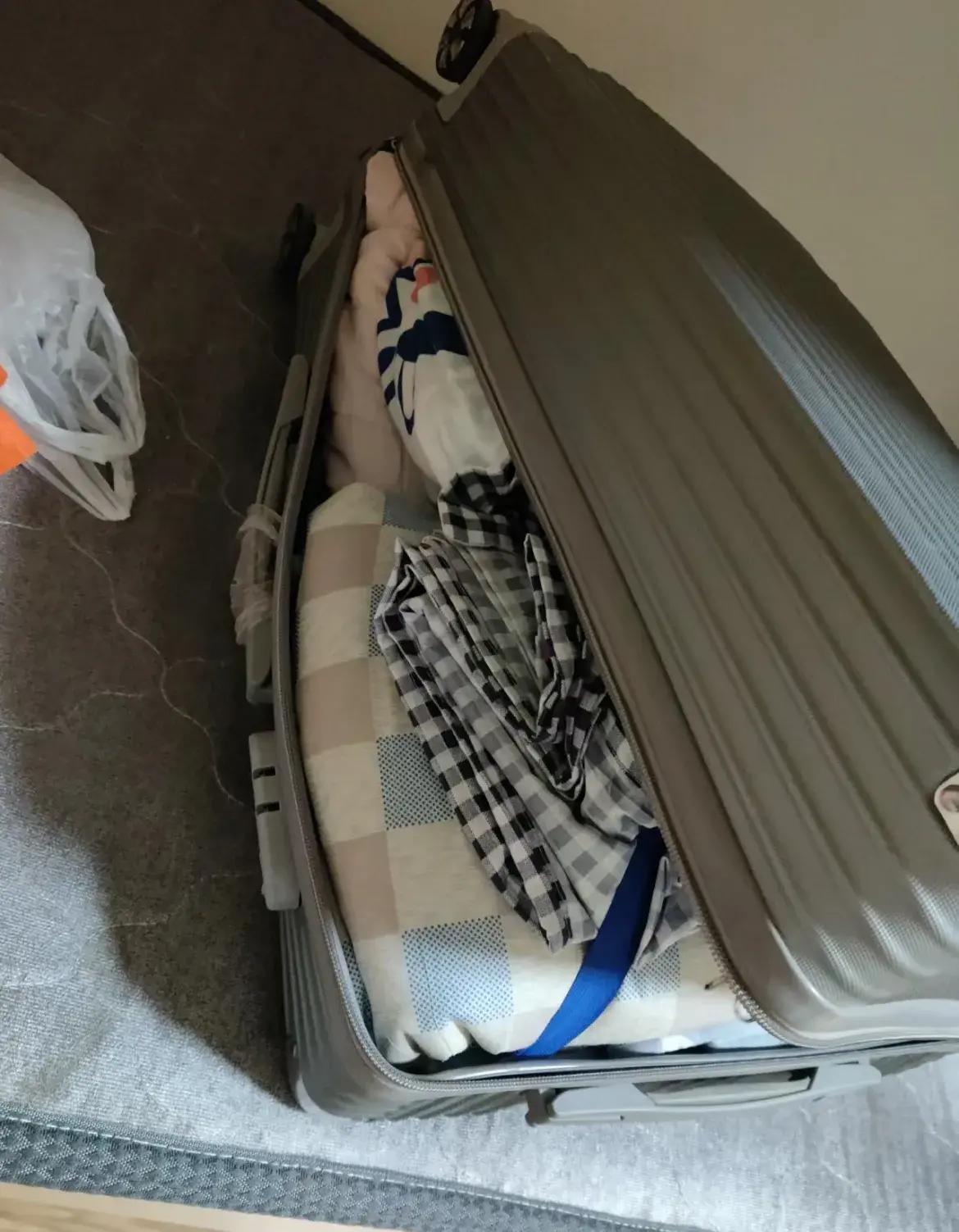 收拾好的行李箱,經常會遇到合不上的情況,如果不是太離譜,大概率不用捨棄一部分東西,只要把行李箱對摺,然後坐在行李箱上,再拉拉鍊就成。