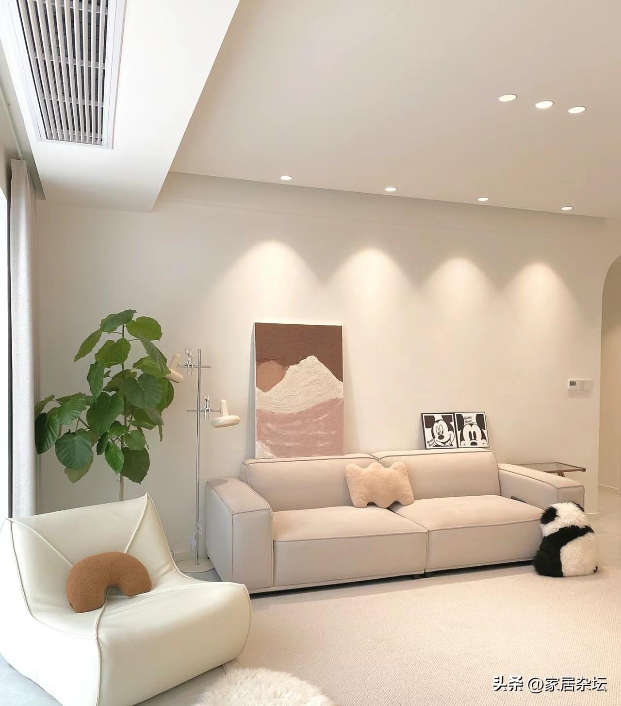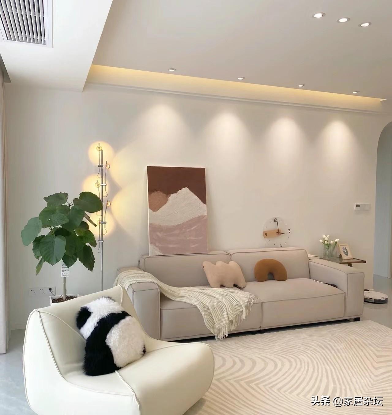 ⑤、對於家裏使用率最高,空間相對比較大的客廳來說,一般建議大家選用低飽和度的淺色系乳膠漆。這類乳膠漆,也可以刷出高級感和通透感,讓客廳顯得寬敞、大氣,讓人呆在客廳也會感覺更加的舒暢。