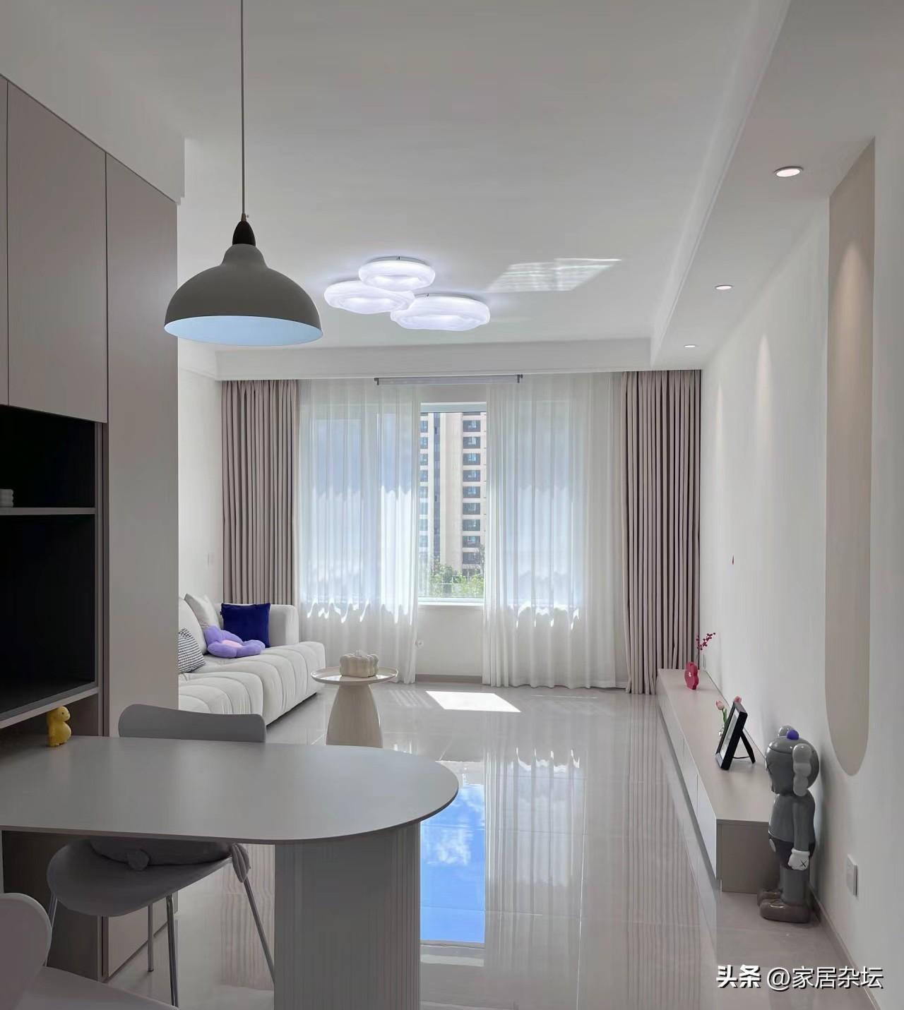 ①、對於小空間來說,一般建議大家選擇淺冷色系的乳膠漆。這樣可以在色調上,實現視覺上的放大空間,能夠讓我們的這個空間顯得更明亮,更寬敞、通透。