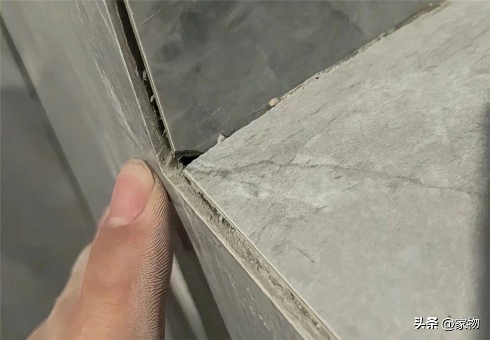 海棠角的切角也一樣,有很多暗損明損,就這麼將就着直接用上去了,說是後期美縫能補,但後面美縫的事兒我就不說了,讓這位熟人工長找直接找的白色,根本不是同色,搭不上不說還會顯出這些磕碰角。