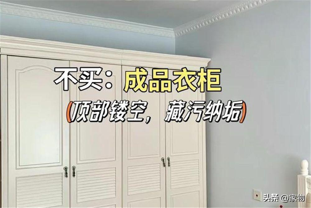 雖然我建議大家能買成品就少做定製,但有一件除外,就是衣櫃,成品衣櫃勢必會讓頂部留出空擋,後面清潔打理都是問題,奉勸大家還是做定製衣櫃,直接做成通頂的比較合適。