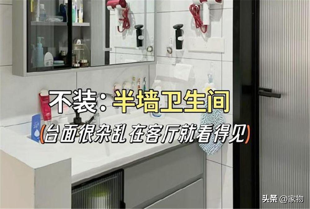 半牆衛生間真的是被人帶跑偏了,即便有完整的衛生間都要拆出來做一個半牆,彷彿是要把這些雜亂完完整整展露在室內一樣,沒錯,洗手檯面很容易雜亂,做了半牆,要麼徹底放棄室內整潔,要麼每天小心翼翼收納整理,真·不·實·用!