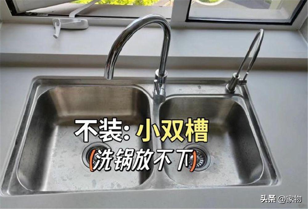 小雙槽的水槽有其最大的問題,就是沒法洗鍋具,稍微大點的炒鍋根本放不到水槽裏,強行洗會弄得到處都是水,當然,日常洗碗也覺得有些侷促,遠不如大單槽來得方便。