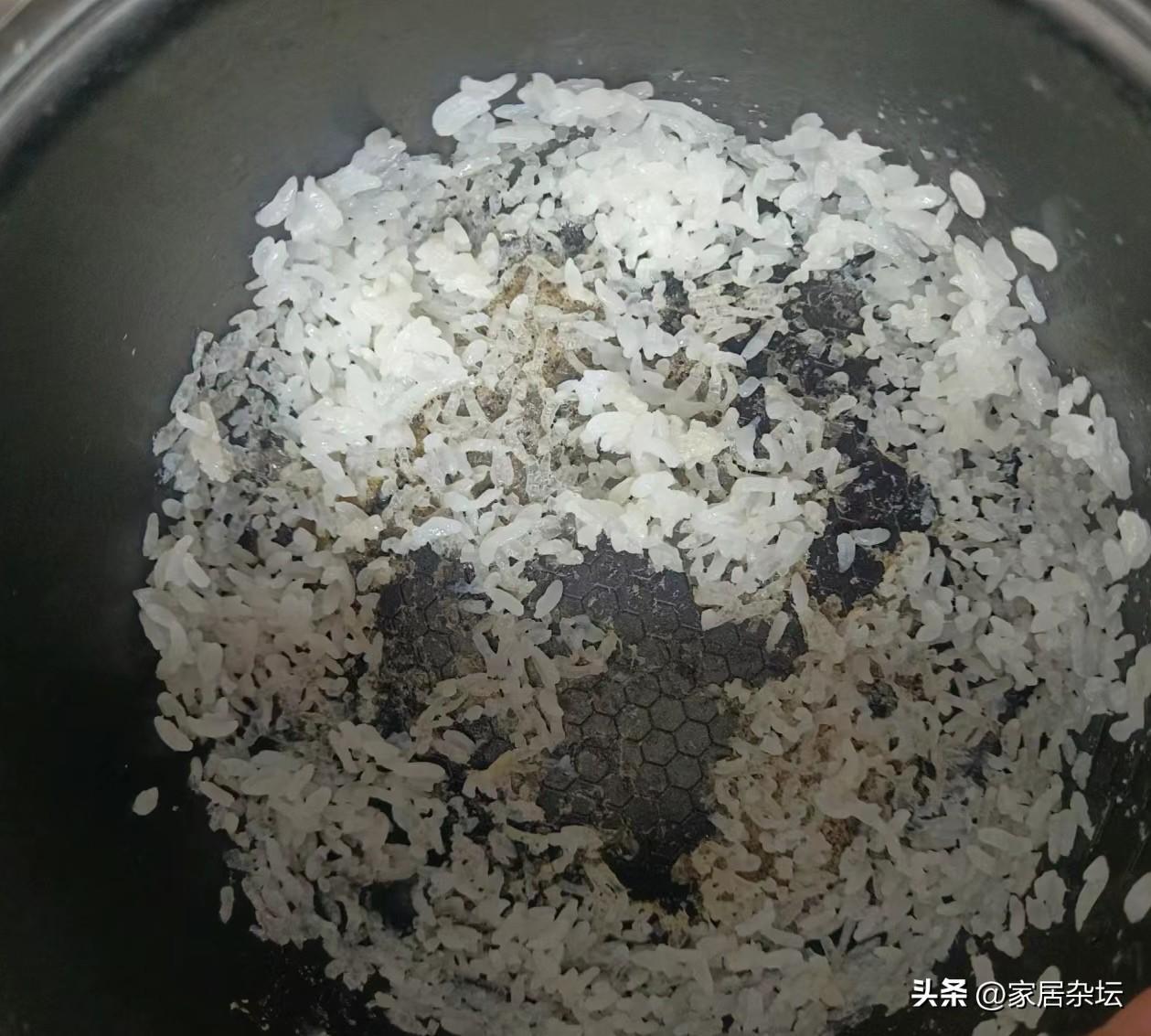 ①、每次蒸米飯,發現米飯都粘在鍋底。盛完米飯以後,鍋底上厚厚的一層,甚至都有的糊了,只有用水泡才能刷下來。